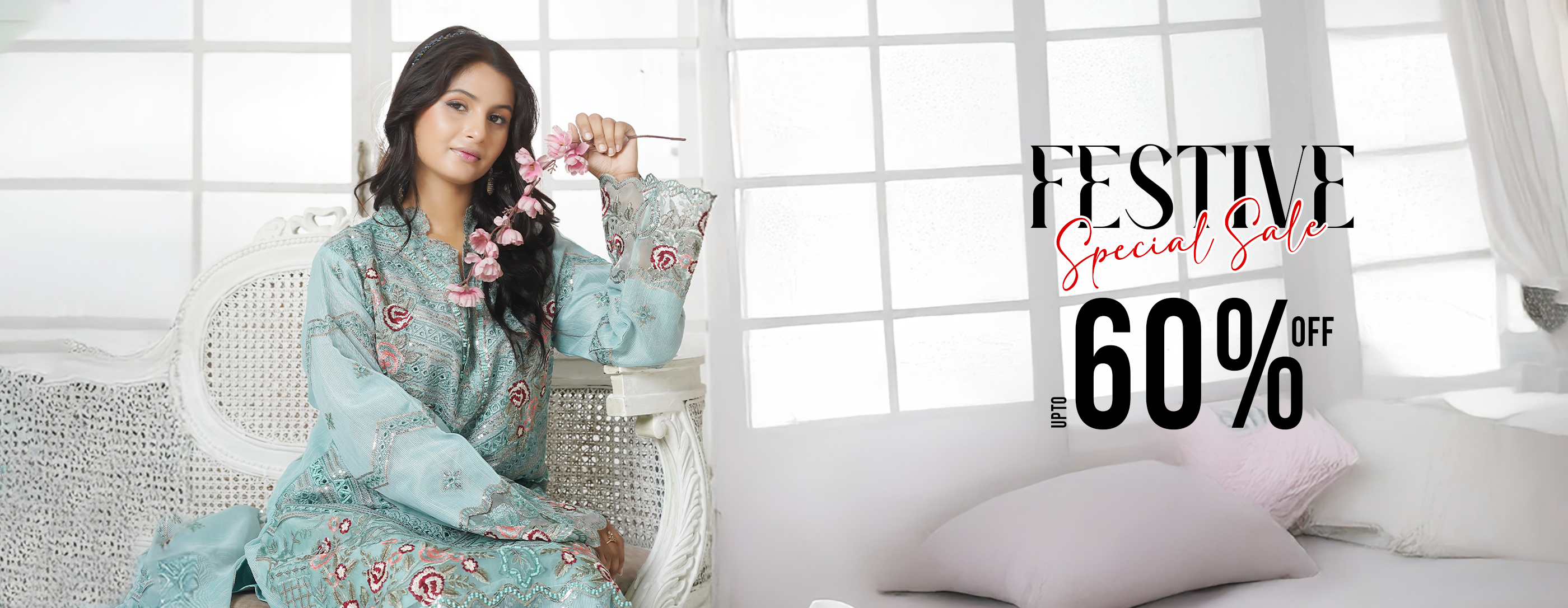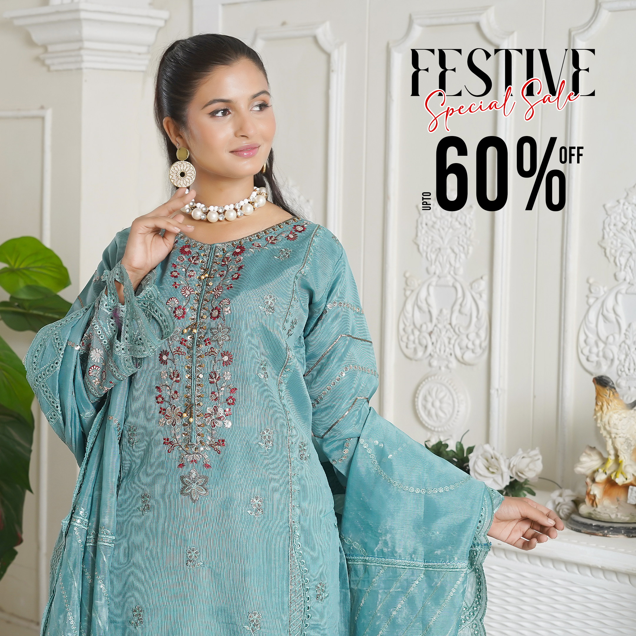 Embroidered Pestal Aqua 3 Piece Pret