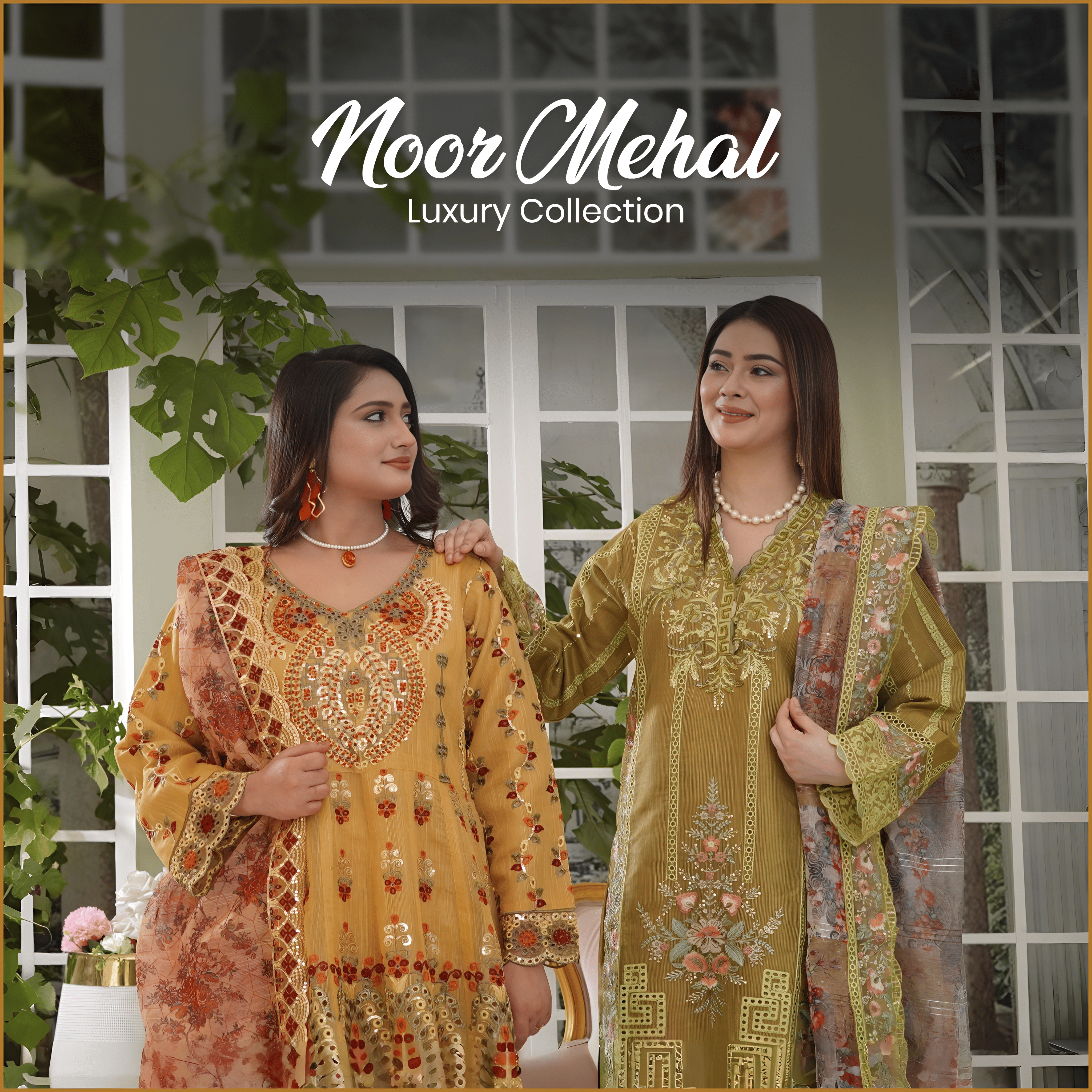 Embroidered Mustard Brown Net Slub 3 Piece Pret