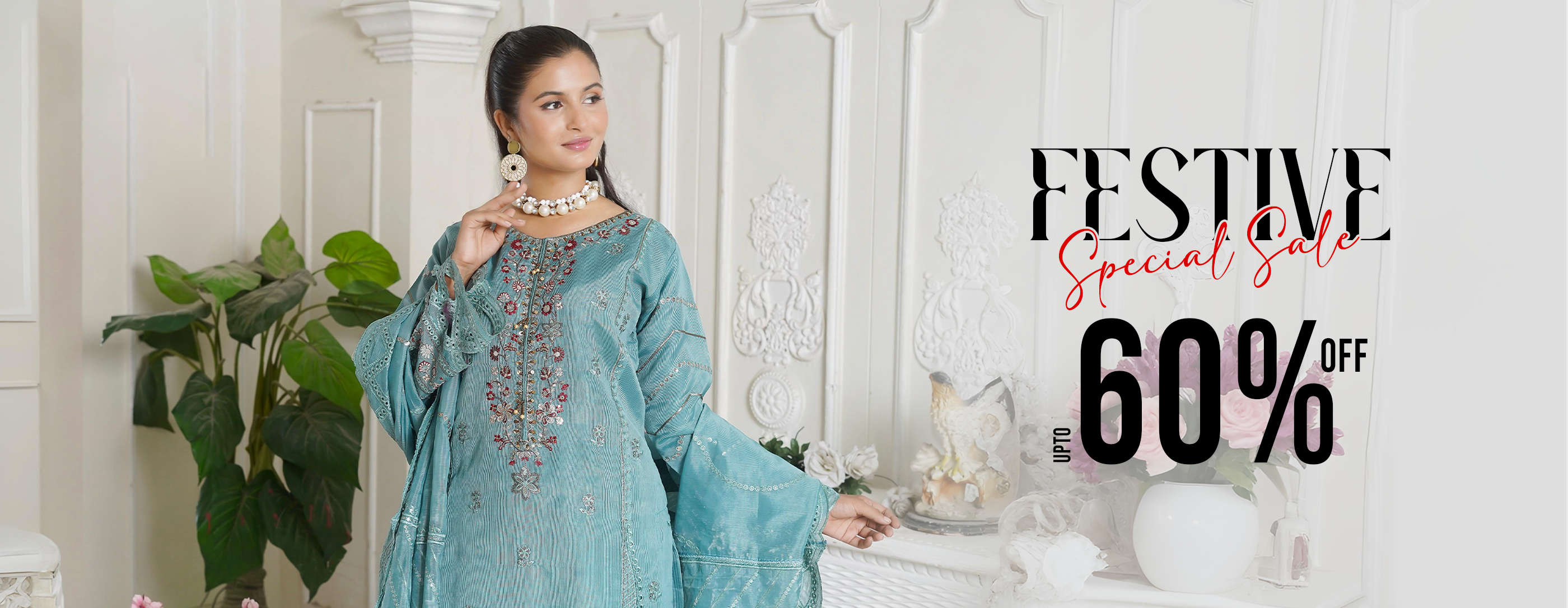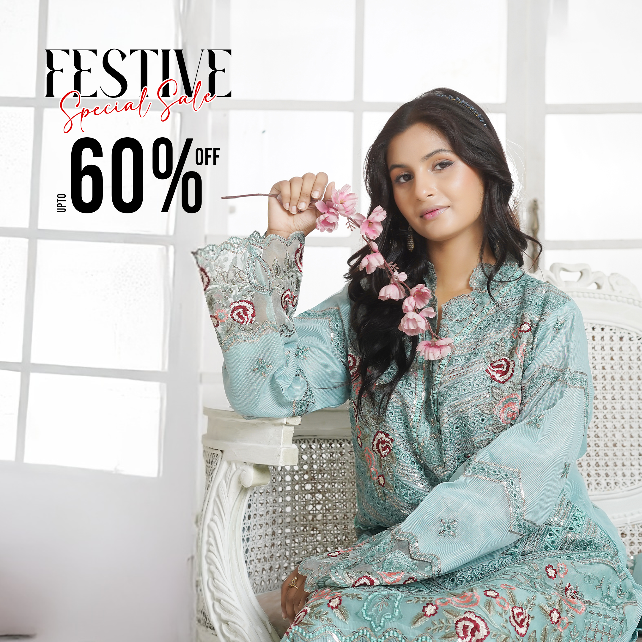 Embroidered Pestal Aqua 3 Piece Pret